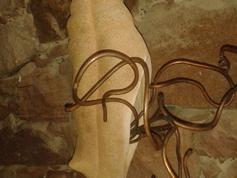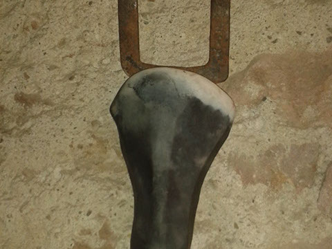 Archaischer Stier: bei den Hörnern gepackt